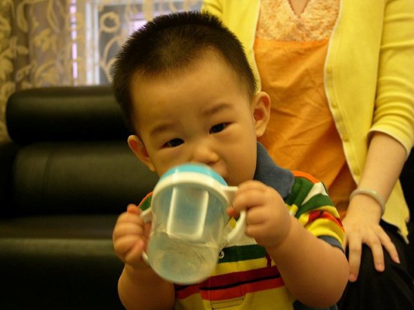牙癢想咬東西就喝點水 (用Aprica第二階段鴉嘴型喝水訓練杯)