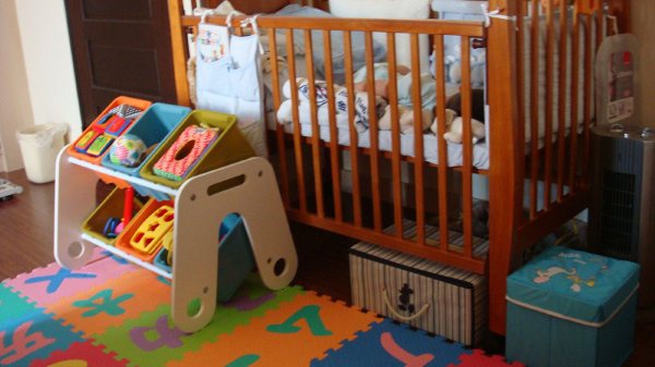 開始佈置房間(他的小床在我們臥室)變成適合他遊戲的空間