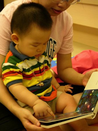 有時一本還得應他要求唸上兩三遍(不熟悉的故事內容)