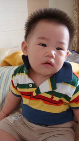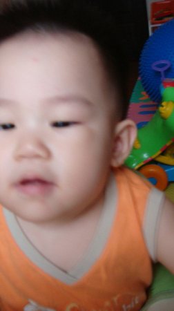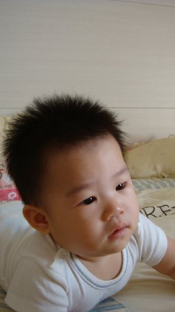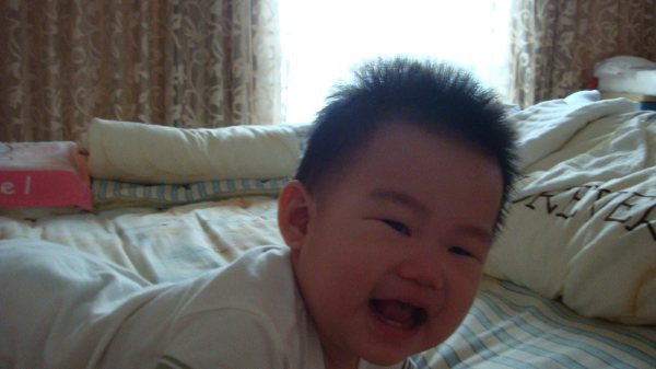 教他點點頭倒學會搖搖頭 只要開心就邊搖頭邊笑