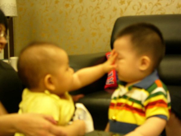 一點都不怕生的他 看到爸比朋友的孩子 不論姐姐或妹妹 都能玩在一起喔