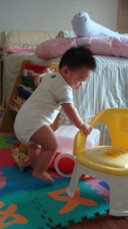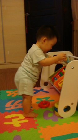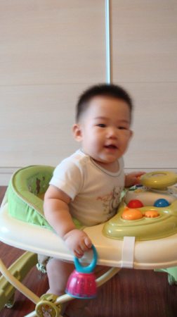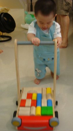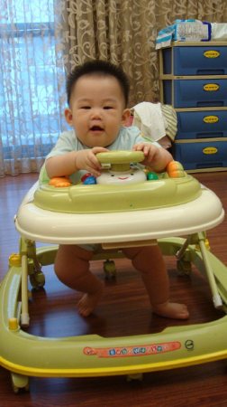 只差沒放手自己走(偏偏他是個謹慎的小孩 怕摔會痛而不敢輕易放手)