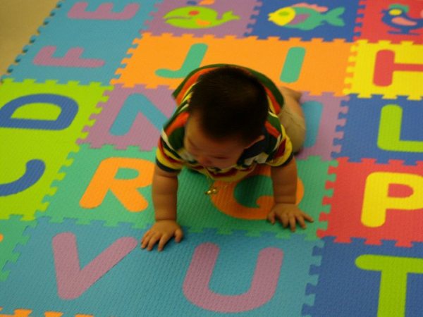 (Albert很愛到我們書房看整排的書櫃及摸書架上的書) 正好長大以後可以鋪地墊變成他自己的Reading Corner
