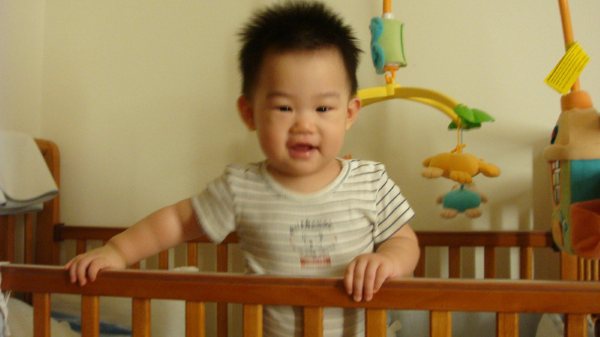 都會自己在小床裡站起來玩一陣子再出聲叫我